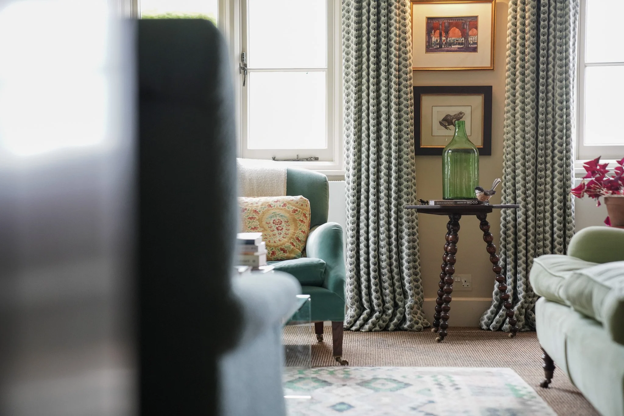 The heart of our business is our workroom, where our seamstresses can be seen by passers-by handmaking our latest project pieces. Lisa, formerly a textile conservator for the National Trust, trained her team of incredibly talented seamstresses to employ both traditional and new techniques to create beautifully designed pieces with the finest detailing and quality.